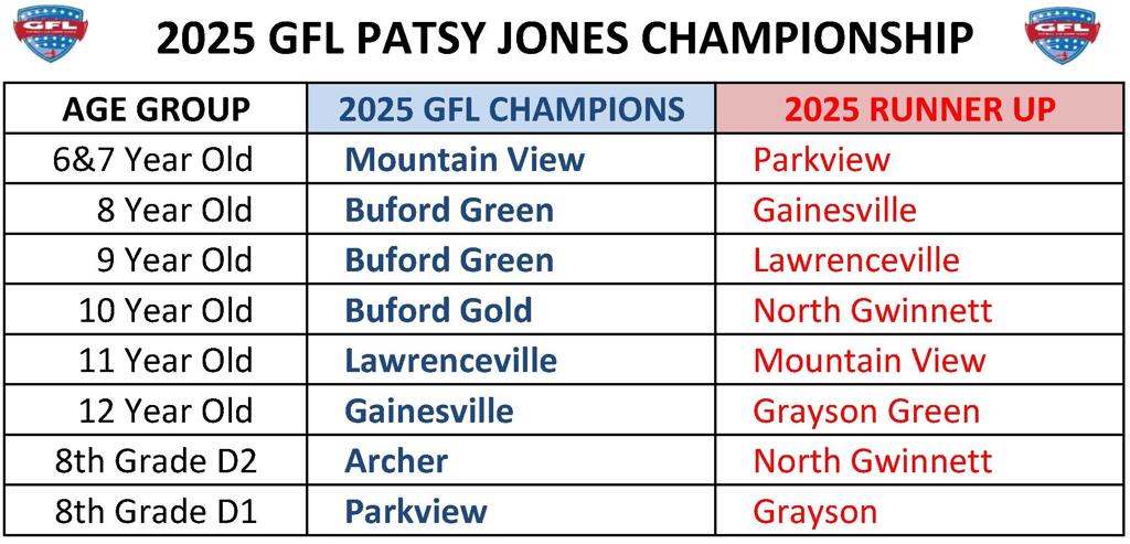 CONGRATULATIONS TO OUR 2025 GFL CHAMPIONS