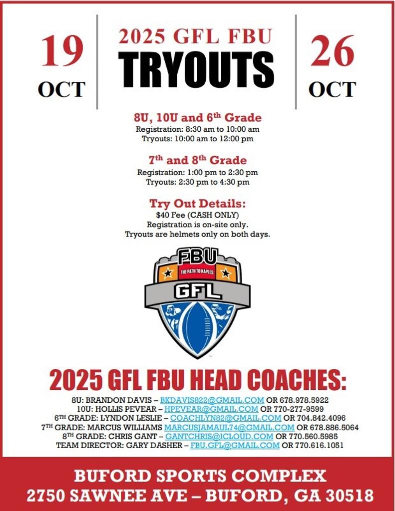 We're looking for responsible men and women who are interested in a position that both pays and serves the youth of the Gwinnett Football League. Maybe you grew up in the GFL and have always wanted to get involved with the program of your youth, or maybe you just need to make a little extra money. Here's your chance!!! Sign up to become a GFL Official. Whether you've been an Official before or whether you're brand new, we will train you! So sign up today and join a terrific program built around serving the youth of Gwinnett County.